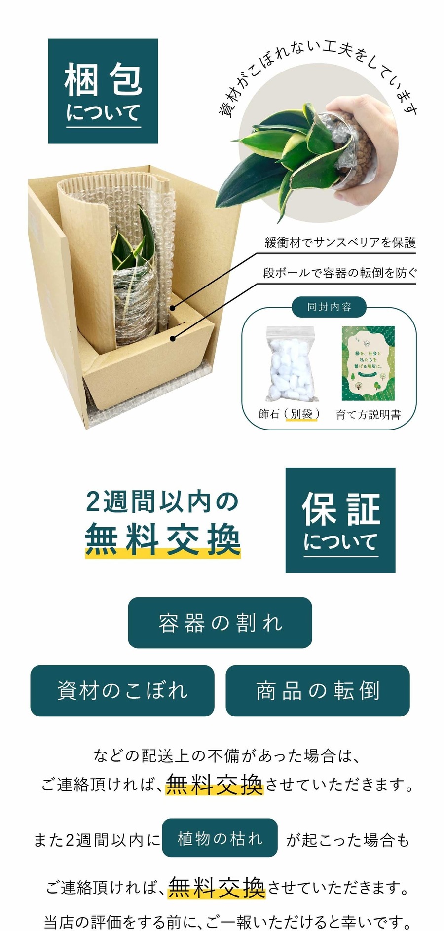 商品到着から2週間以内にご連絡いただければ、最短24時間以内に無料交換いたします。