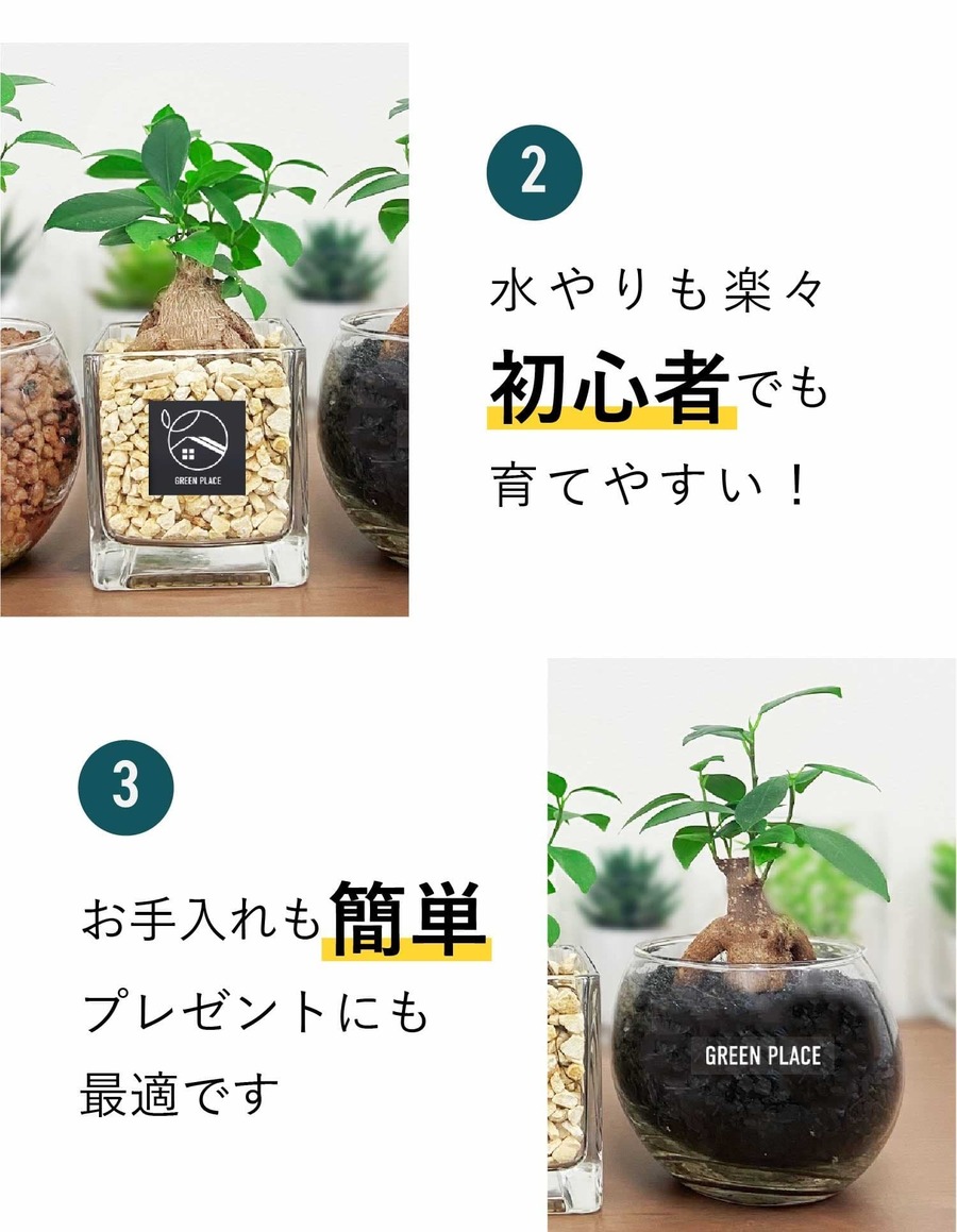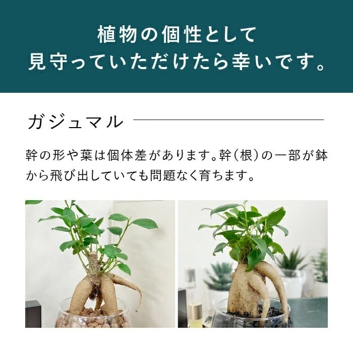 ひとつひとつ幹の形や葉の付き方が異なります。自然の植物ならではの個性をお楽しみください。